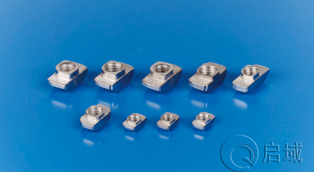 一是T型螺母。T型螺母也是分為國標(biāo)和歐標(biāo)的,那么國標(biāo)鋁型材使用的話,可以選用30系列和40系列的國標(biāo)T型螺母,分別適用于國標(biāo)槽6系列鋁型材和國標(biāo)槽8系列鋁型材。