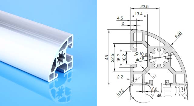 我們經(jīng)常用的工業(yè)鋁型材外形都是四四方方的,四面帶槽。組裝框架時(shí),使用專(zhuān)用的配件在槽內(nèi)進(jìn)行連接就能實(shí)現(xiàn)成品框架。根據(jù)客戶(hù)的需要我們的工業(yè)鋁型材不只四方的,還有圓弧型的型材,有小伙伴咨詢(xún)問(wèn)道:圓弧工業(yè)鋁型材如何實(shí)現(xiàn)垂直連接?下面這篇文章就來(lái)給大家介紹。